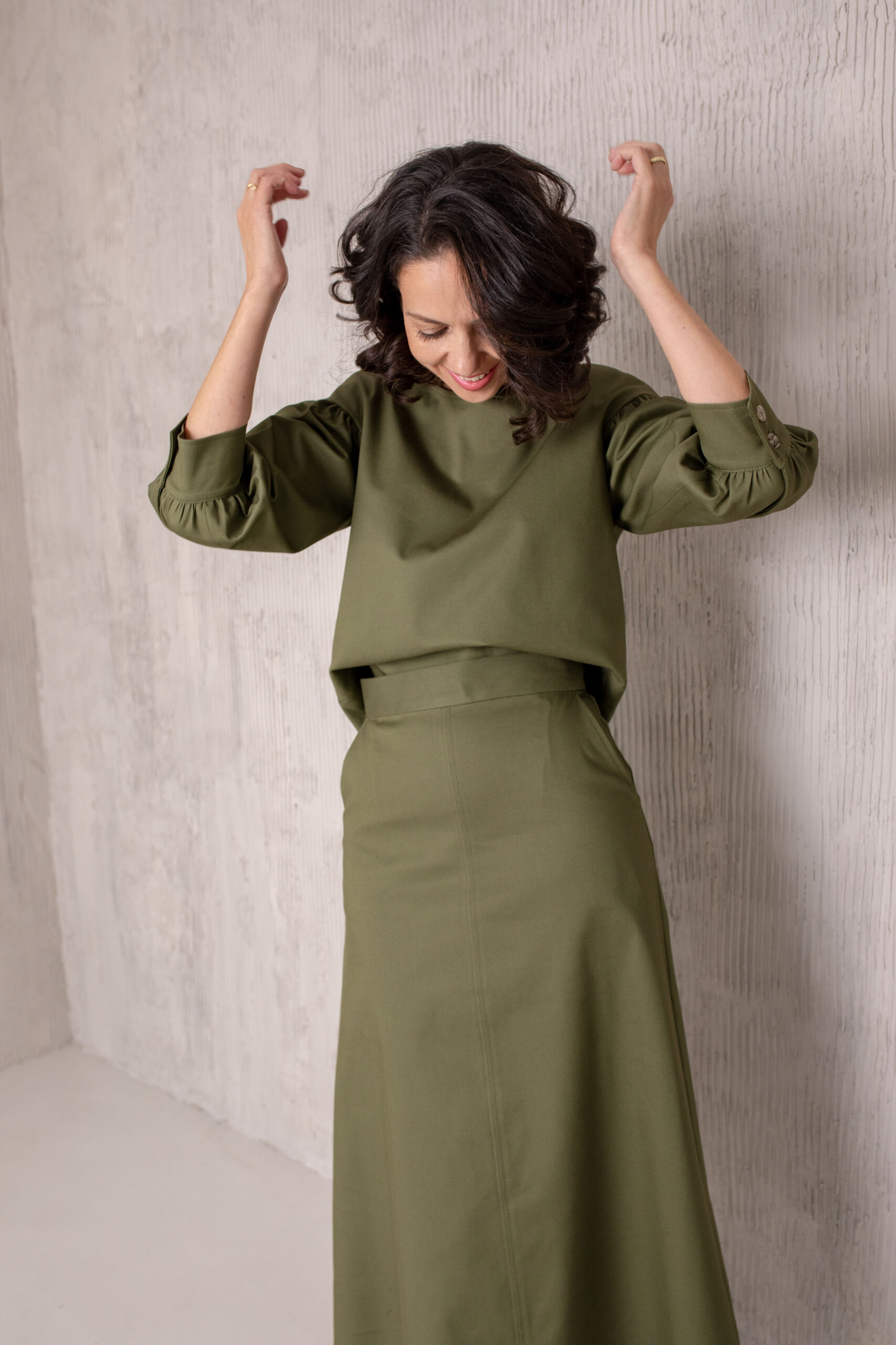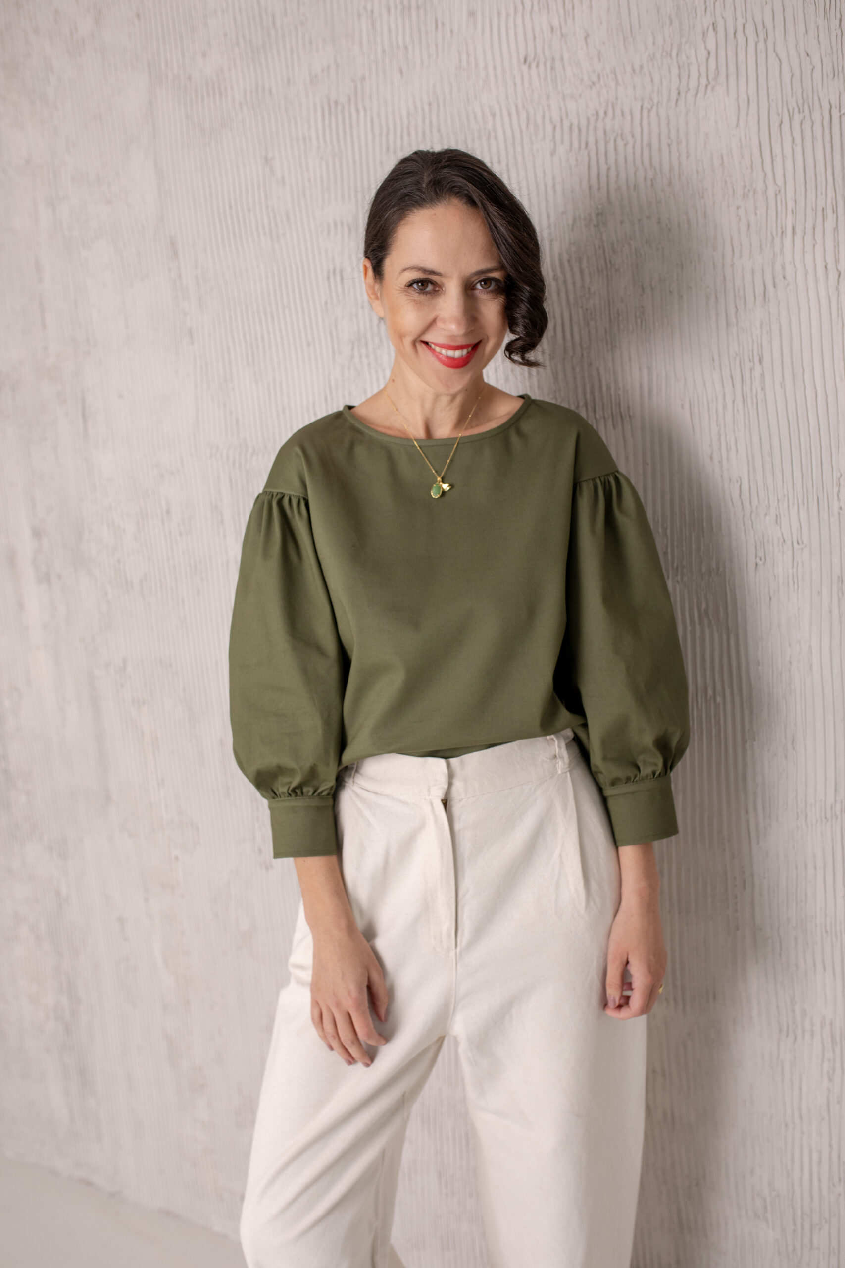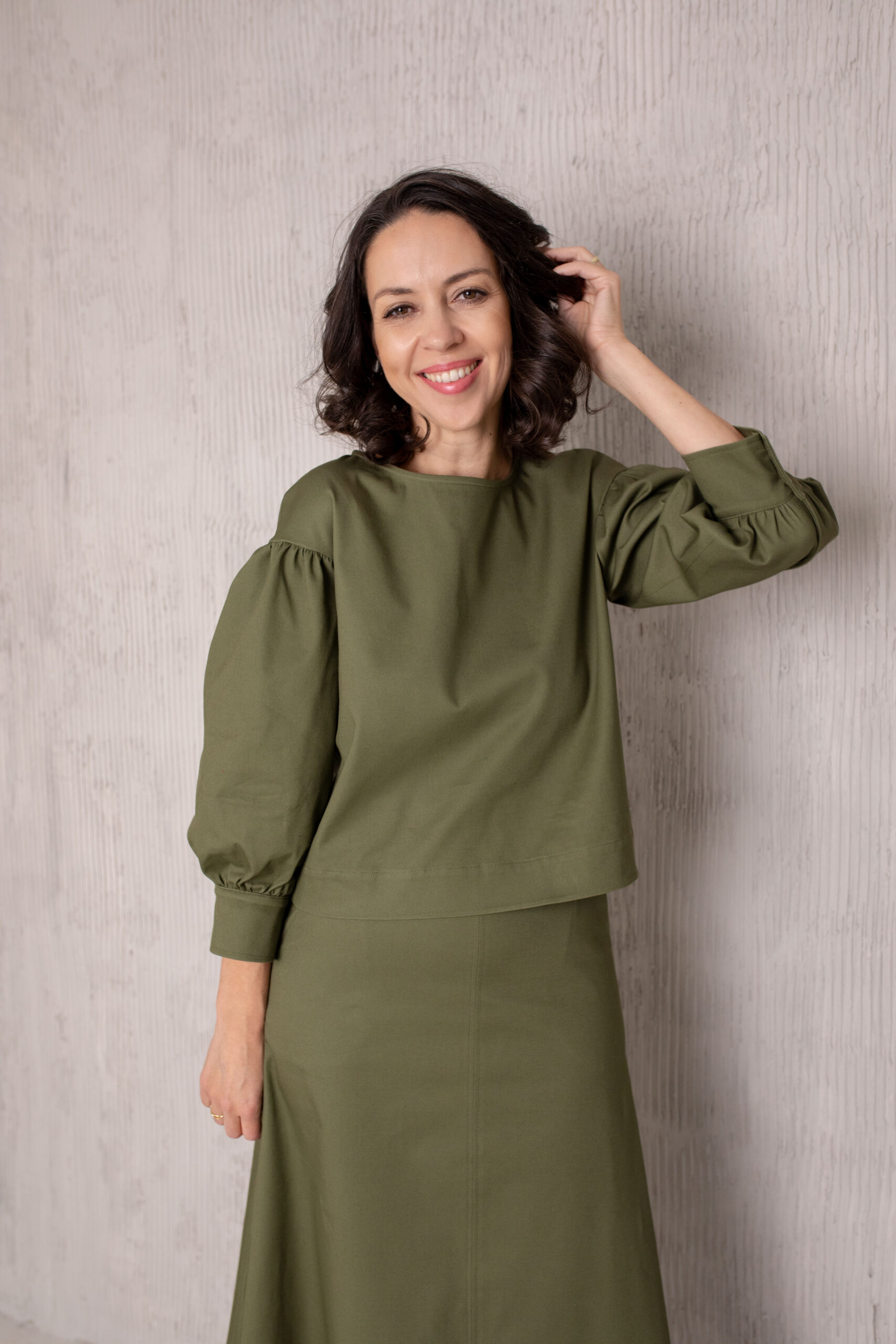 Ez a buggyos ujjú felső az ing és pulóver közti átmenet. Szettben elegáns, farmerrel/nadrággal sportosabb viseletet kölcsönöz. Betűrve és kitűrve is variálható, testalkatnak és a kedvünknek megfelelően. Az anyaga pamut és tencel keveréke, ami nemcsak a fenntarthatóság, hanem a komfortosság miatt is jó választás.